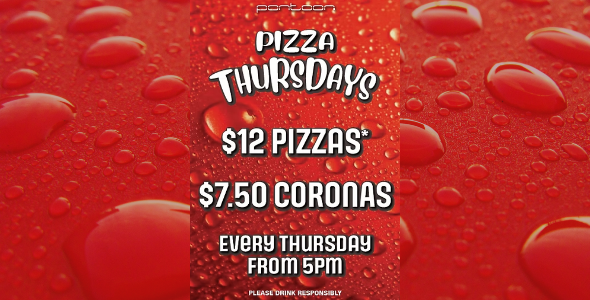 Grab your work besties and enjoy $12 Pizzas and $7.50 Coronas every Thursday from 5pm at Pontoon.